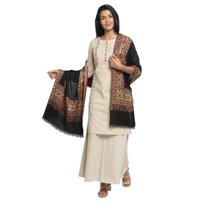 Product Name | Black & Multicolour Woolen Woven Design Geometric Shawl | |