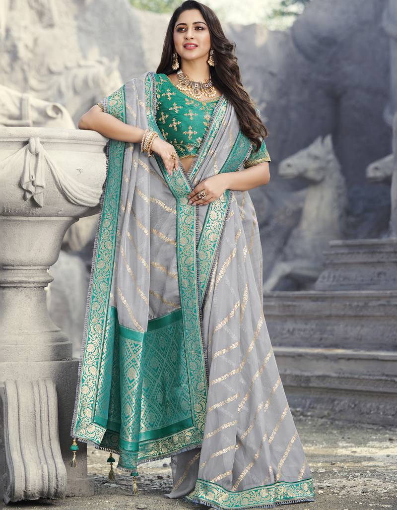 | Product Description | Ravishing Grey Net And Organza And Banarasi Silk Saree Designed With Resham Embroidery. Green Raw Silk Blouse Comes As An Unstitched Material.(Slight Variation In Color/Work/Fabric Is Possible.The Blouse Comes As Unstitched Material) |