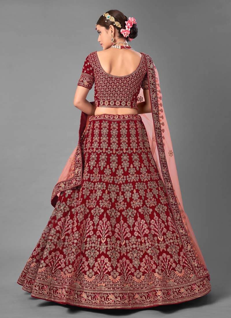 | Product Name | Bridal Maroon Velvet Zarkan Work Lehenga Choli With Soft Net Dupatta | |