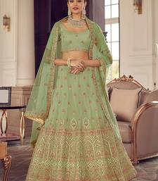 Pista Color plain Work Lehenga Choli With Soft Net Dupatta Set