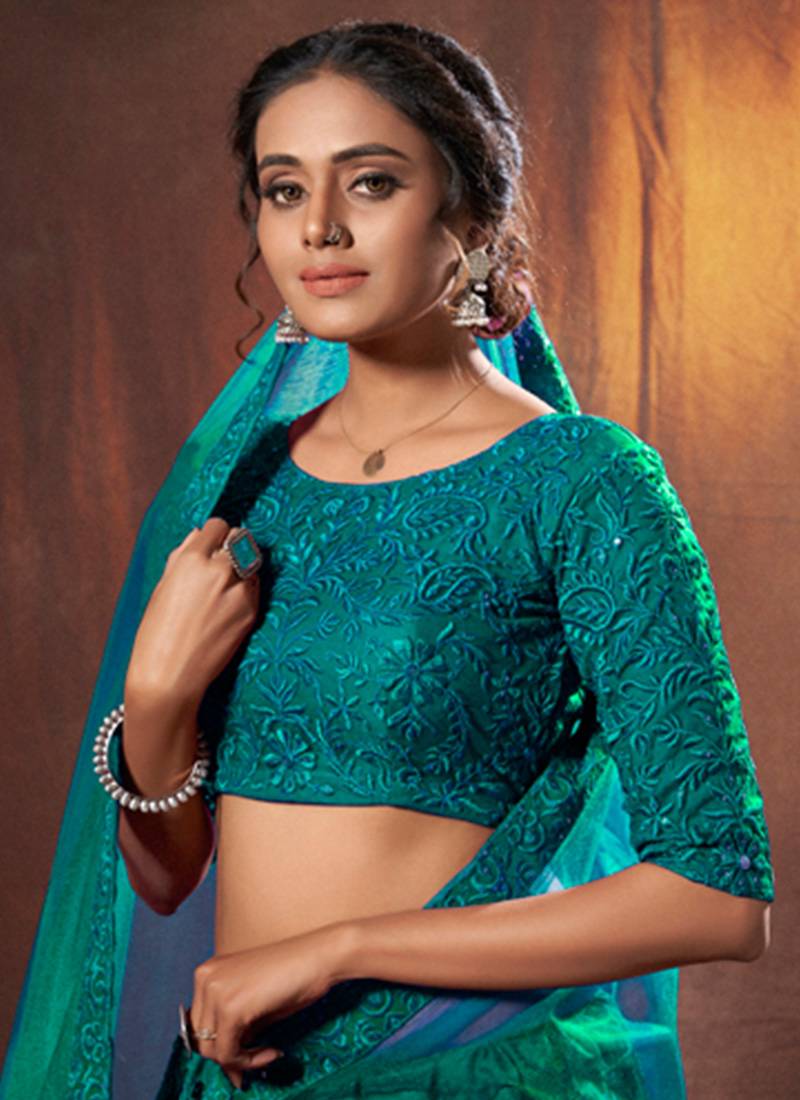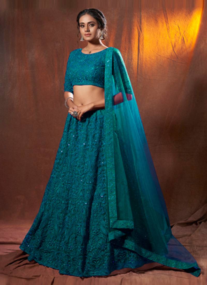 Rama color sequins work lehenga choli