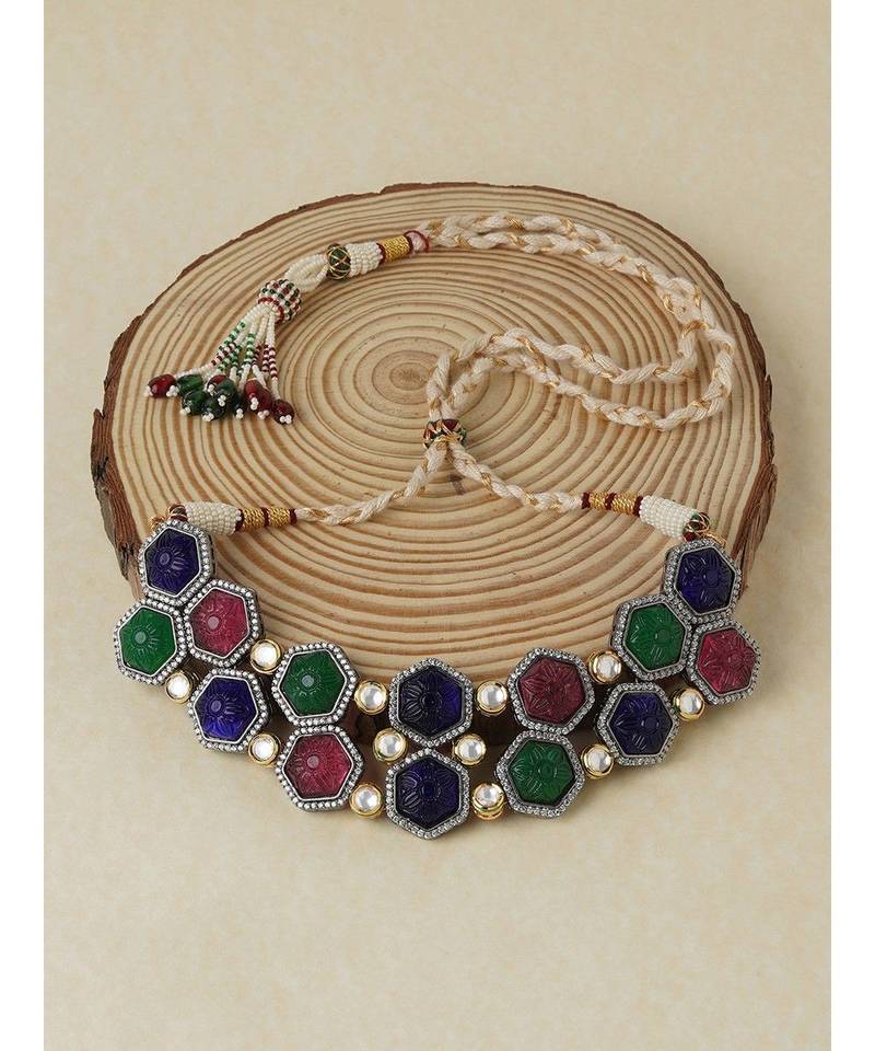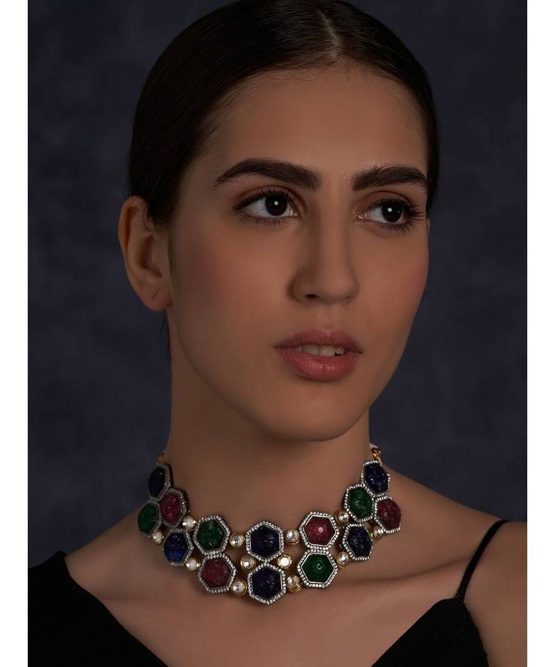 Product Name | Multi Colored Hexagon Carved Stones Necklace | |