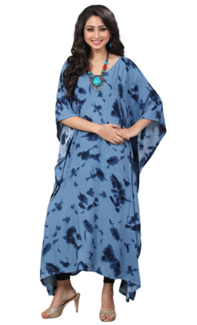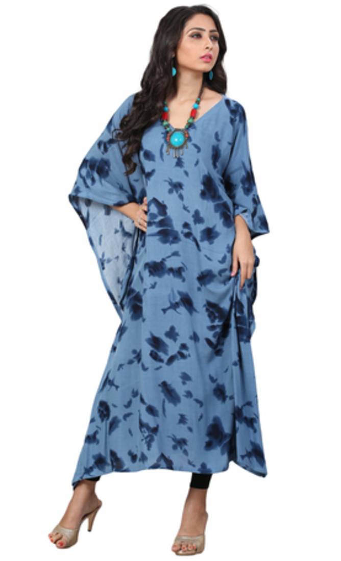 Blue and black color printed high quality rayon soft cotton designer kaftan
