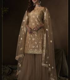 Beige sequins embroidered net sharara suit semi stitched