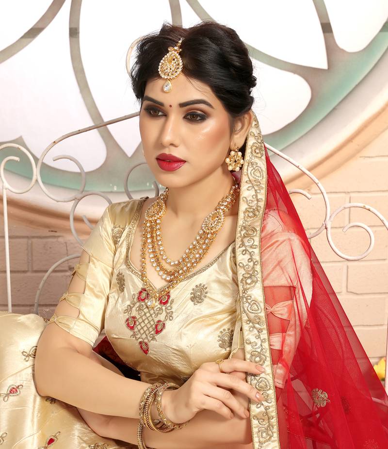 | Product Name | Sweet Beige Embroidered Satin Semi Stitched Lehenga | |