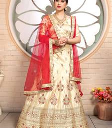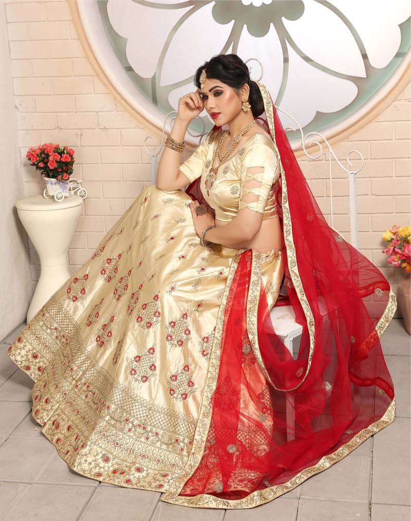 Sweet beige embroidered satin semi stitched lehenga