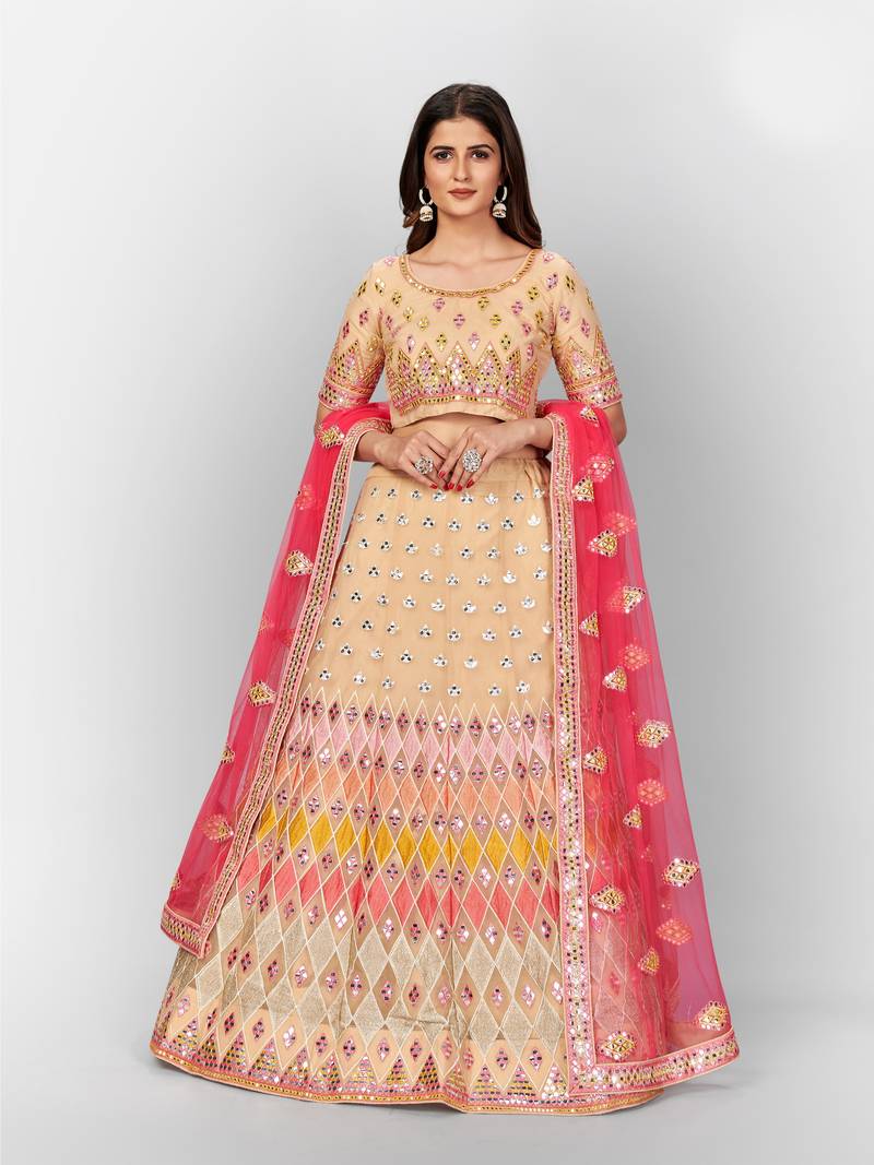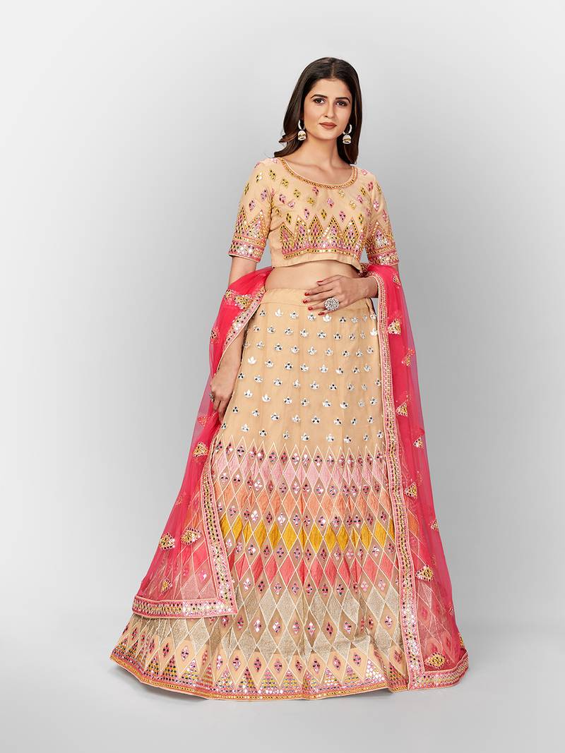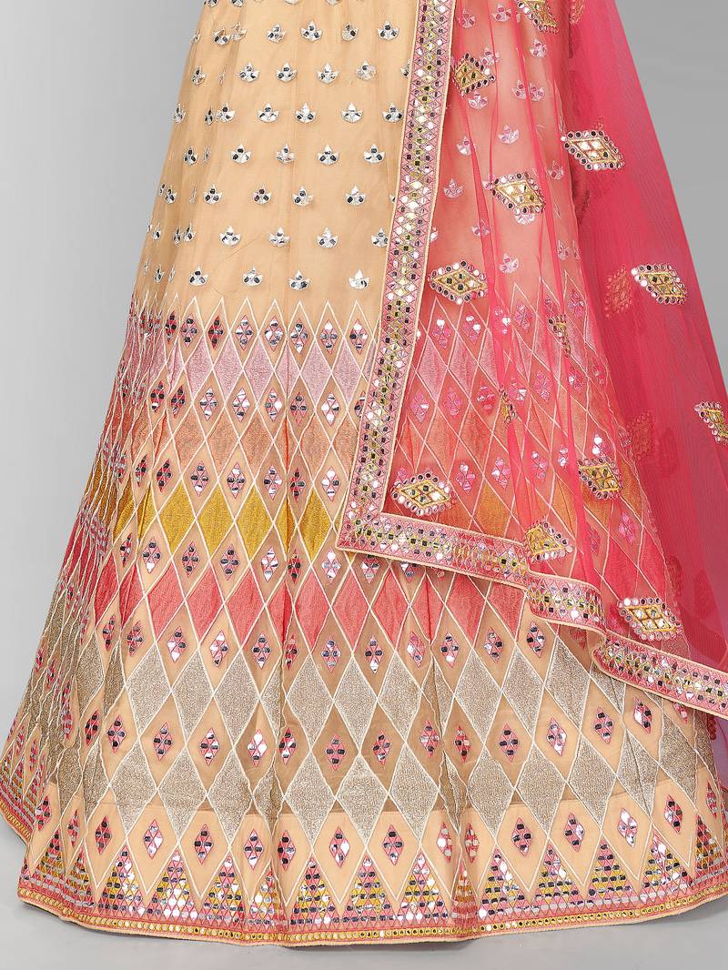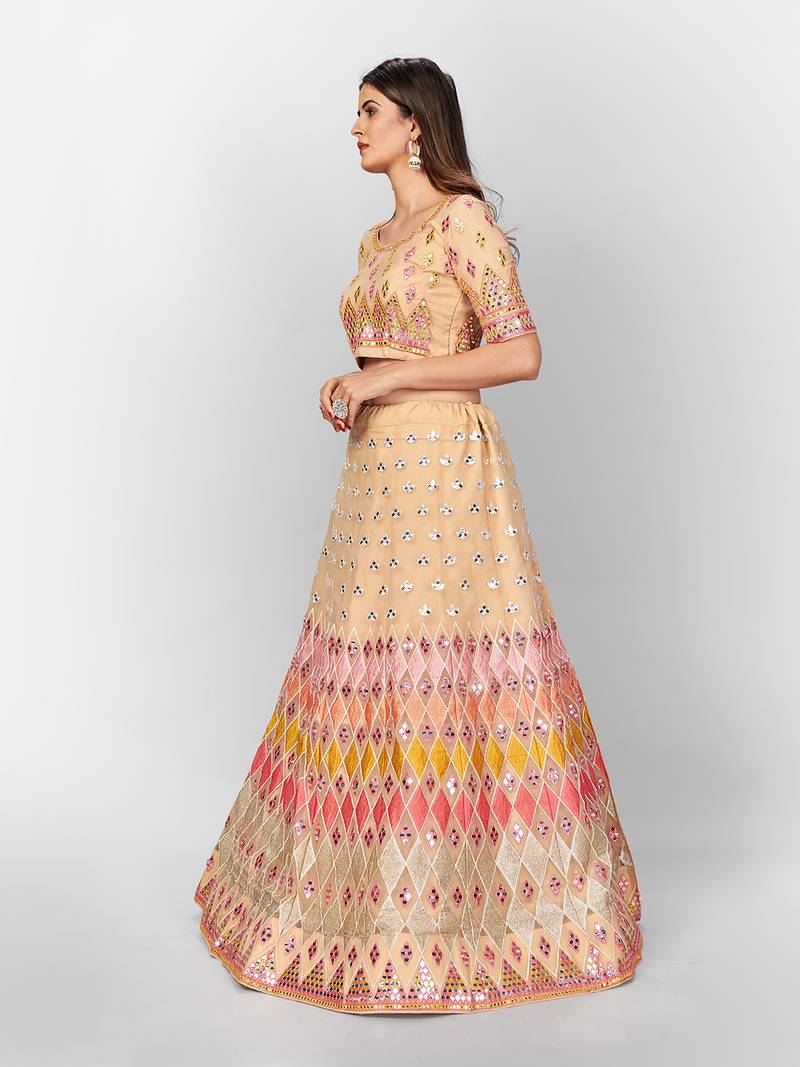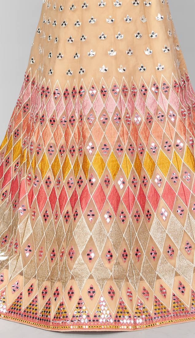 | Product Name | Beguiling Beige Thread Embroidered With Foil Mirror And Cut Work Soft Tissue Organza Semi Stitched Lehenga | |
