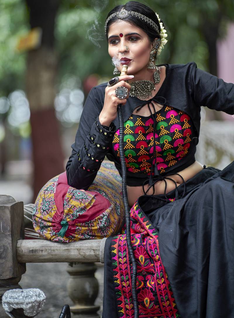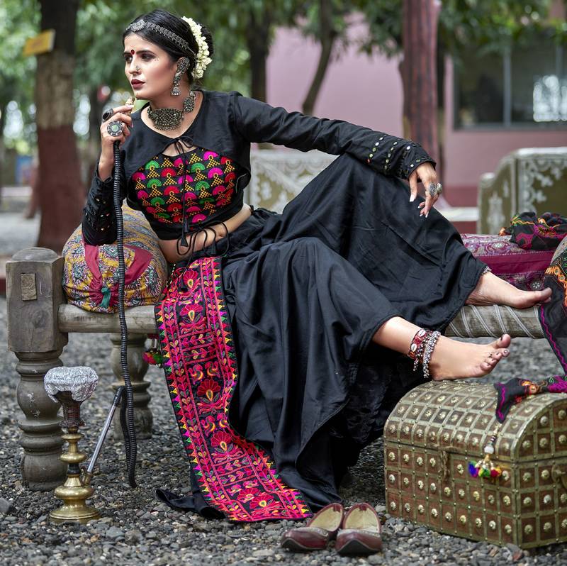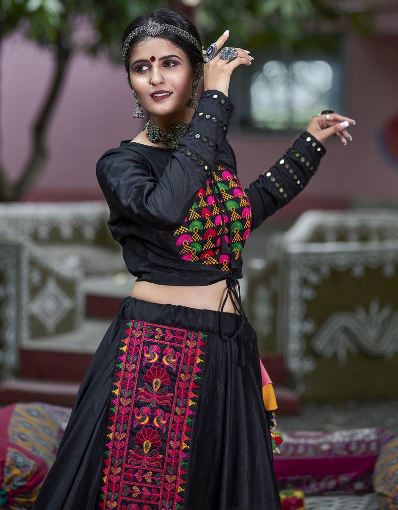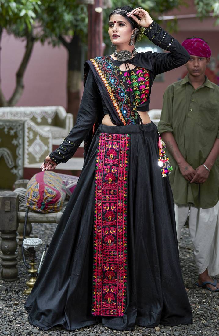 Product Name | Black Embroidered Cotton Indian Traditional Festival Dandiya Raas Garba Semi Stitched Navratri Lehenga | |