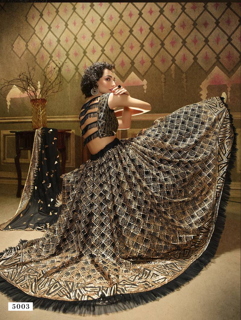 Glamorous black coding and sequins embroidered net fabric lehenga choli