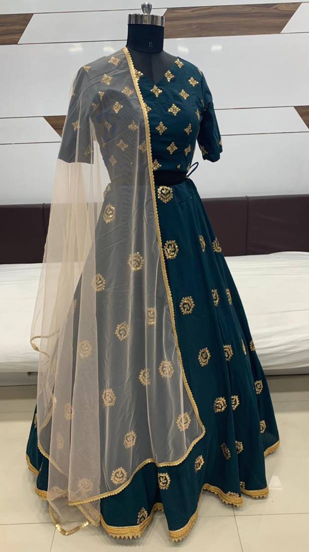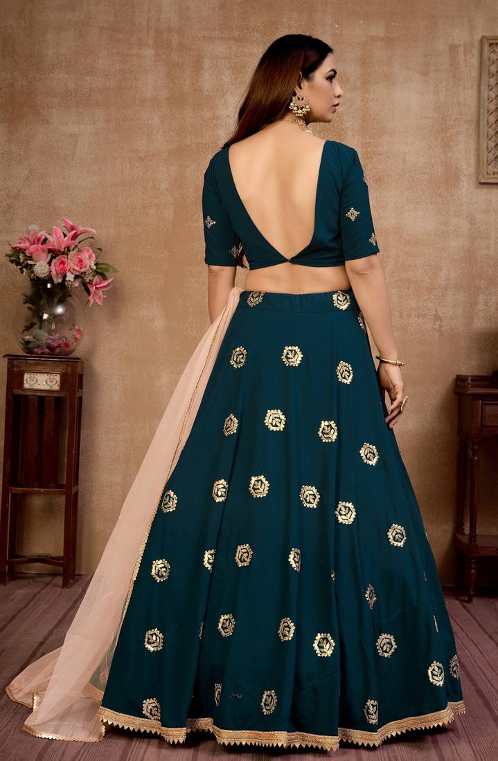 Product Name | Teal Blue Zari And Sequins Embroidered Georgette Semi Stitched Bridal Lehenga | |
