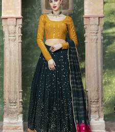 Dark green fancy sequins embroidered with glistening embellished georgette semi stitched lehenga