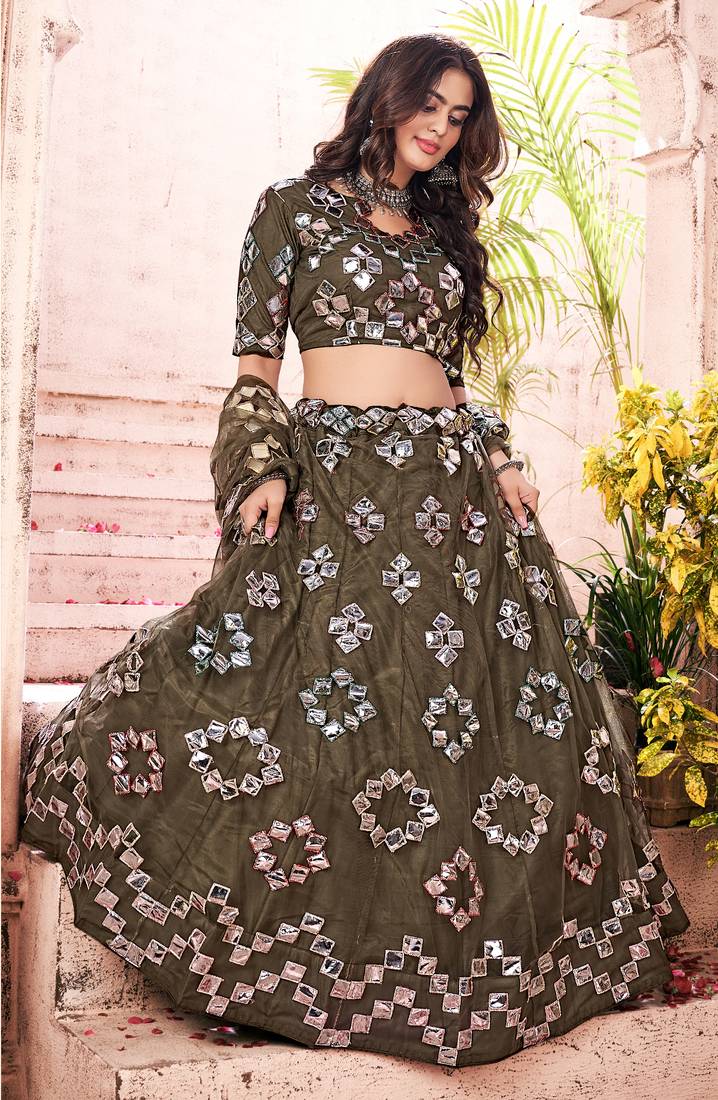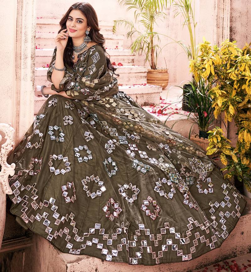 | Product Name | Taking Dark Green Thread Embroidery Net Semi Stitched Lehenga | |