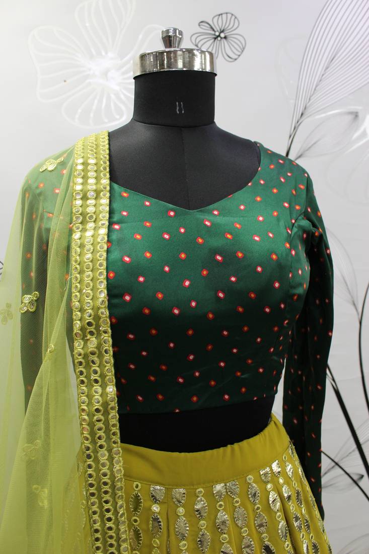 Product Name | Floracance Green Gota Patti Embroidered Georgette Semi Stitched Lehenga | |