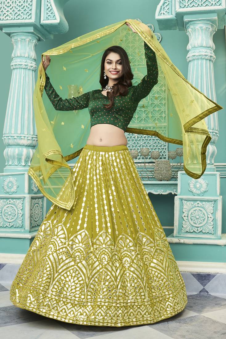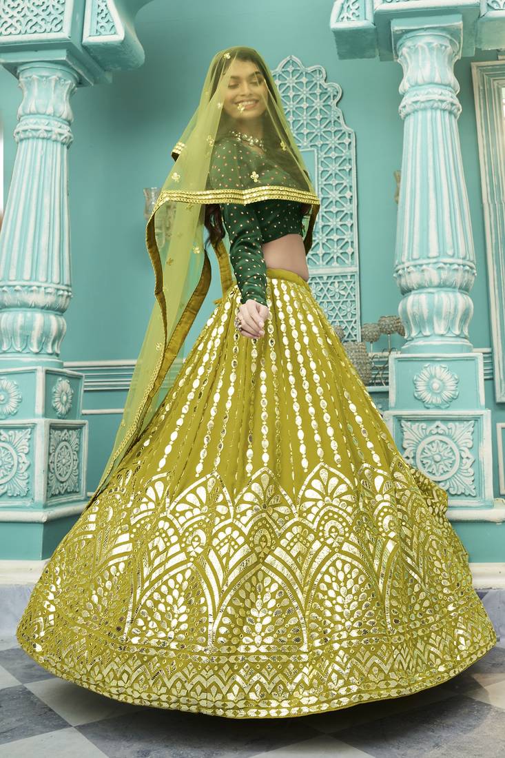 Lehenga Color: Floracance Green; Choli Color: Green; Dupatta Color: Floracance Green; |