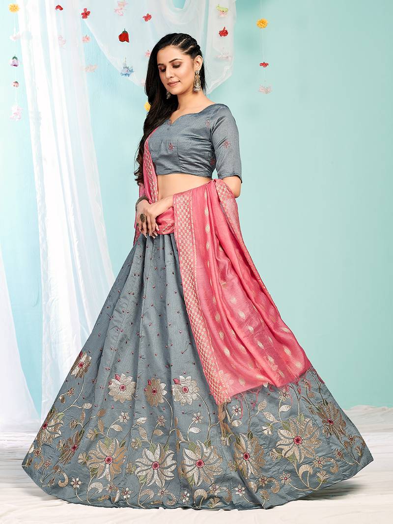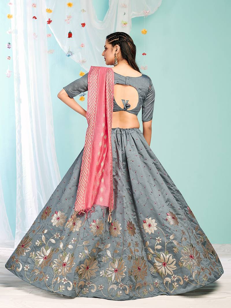 Product Name | Smashing Grey Gotta Patti Satin Semi Stitched Lehenga | |