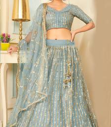 Appetizing light-blue thread embroidery net semi stitched lehenga