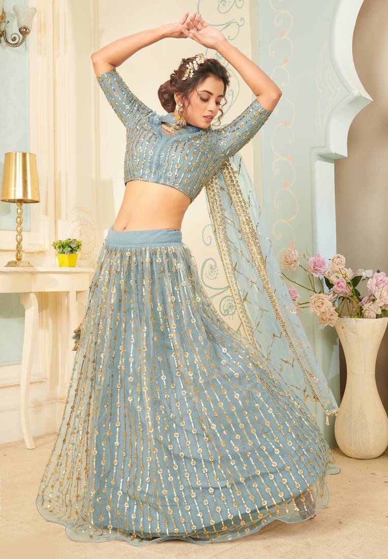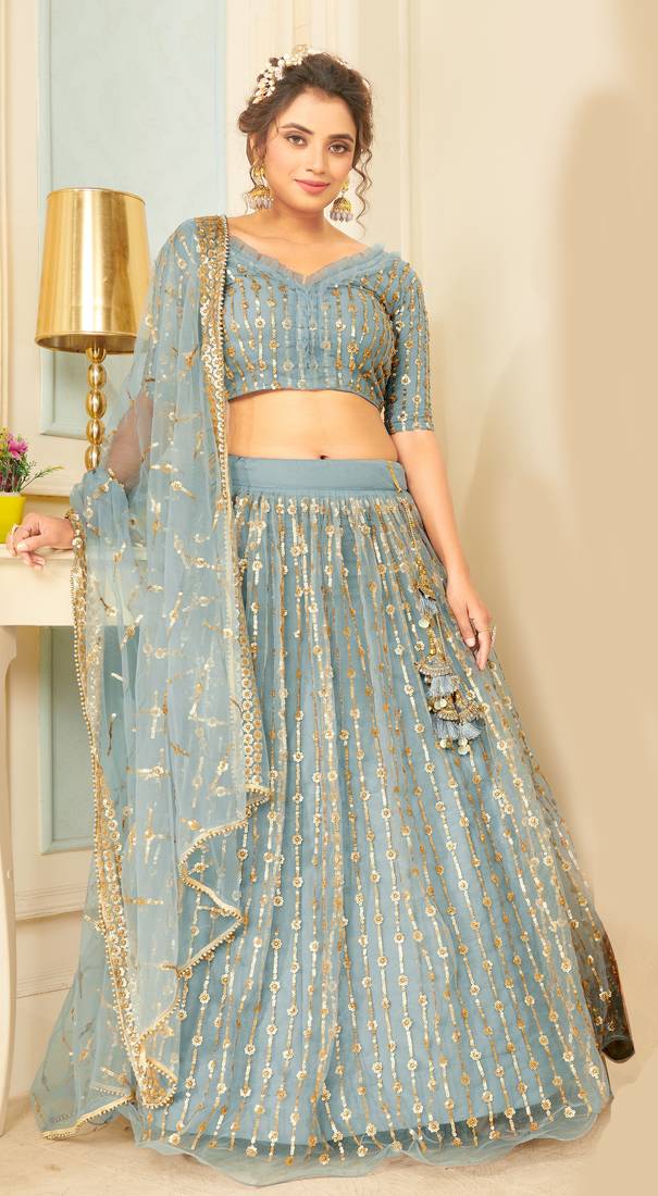 Product Name | Appetizing Light Blue Thread Embroidery Net Semi Stitched Lehenga | |