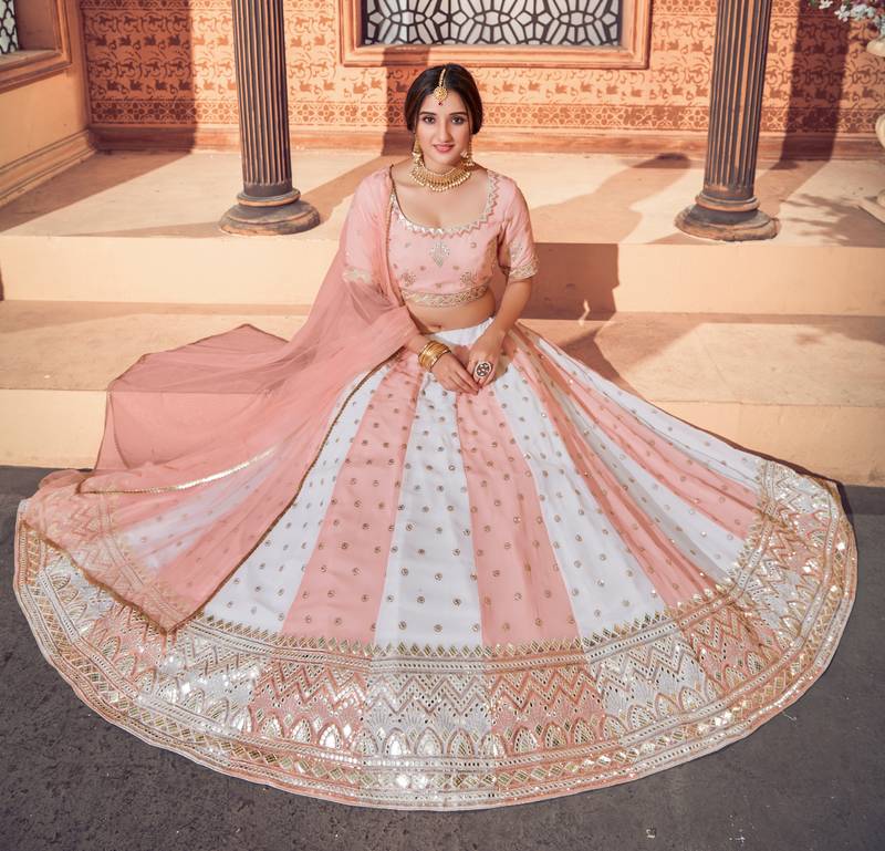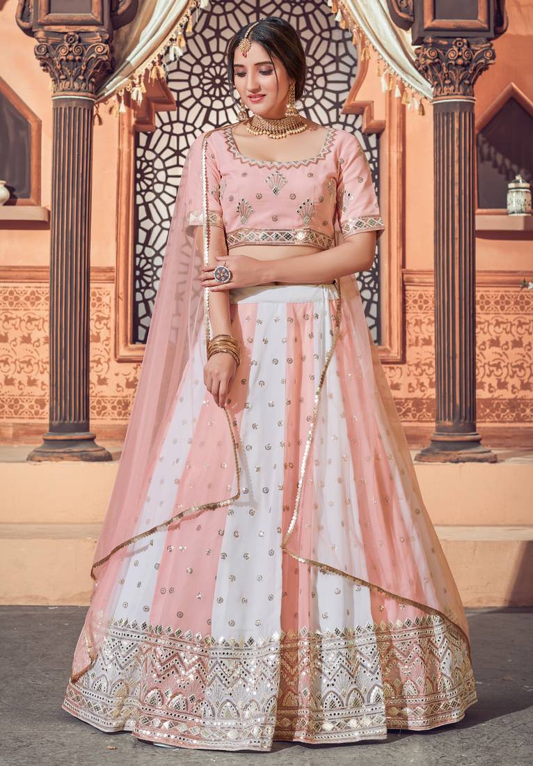 Product Description | Lehenga Choli Color: Light Pink White; Dupatta Color: Light Pink; |