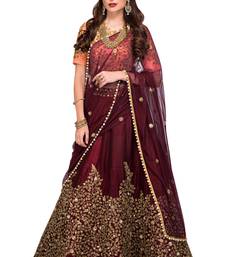 Delightful maroon zari, thread and sequins embroidered silk fabric indian wedding lehenga dress