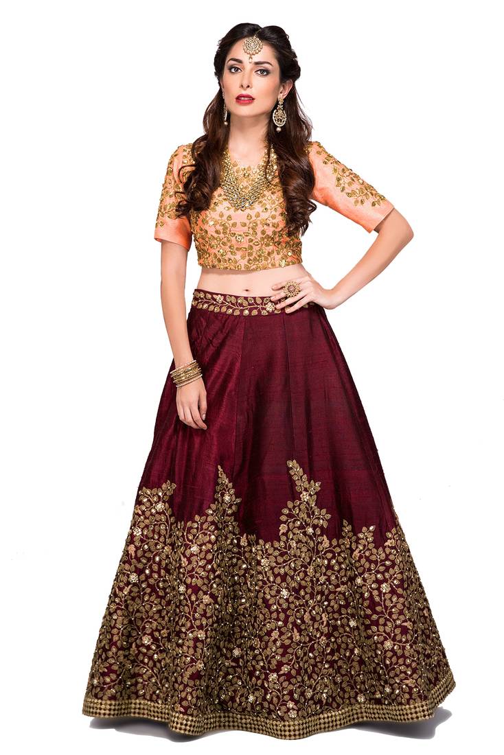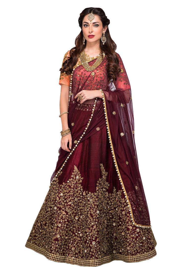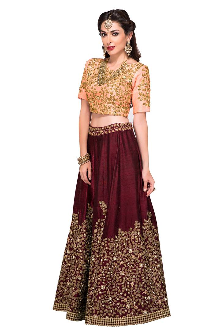 Product Name | Delightful Maroon Zari, Thread And Sequins Embroidered Silk Fabric Indian Wedding Lehenga Dress | |