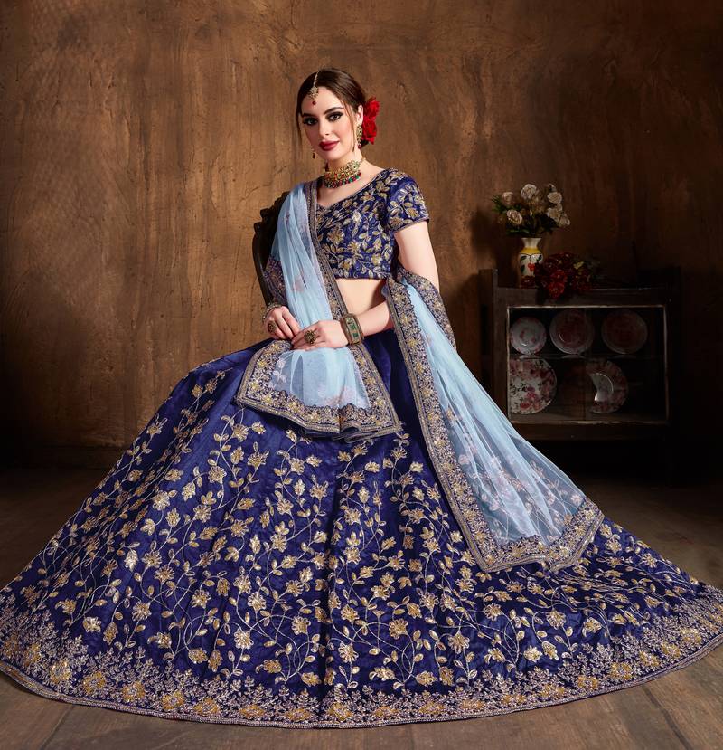 Product Name | Navy Blue Dori, Badla And Sequins Embroidered Silk Bridal Lehenga | |