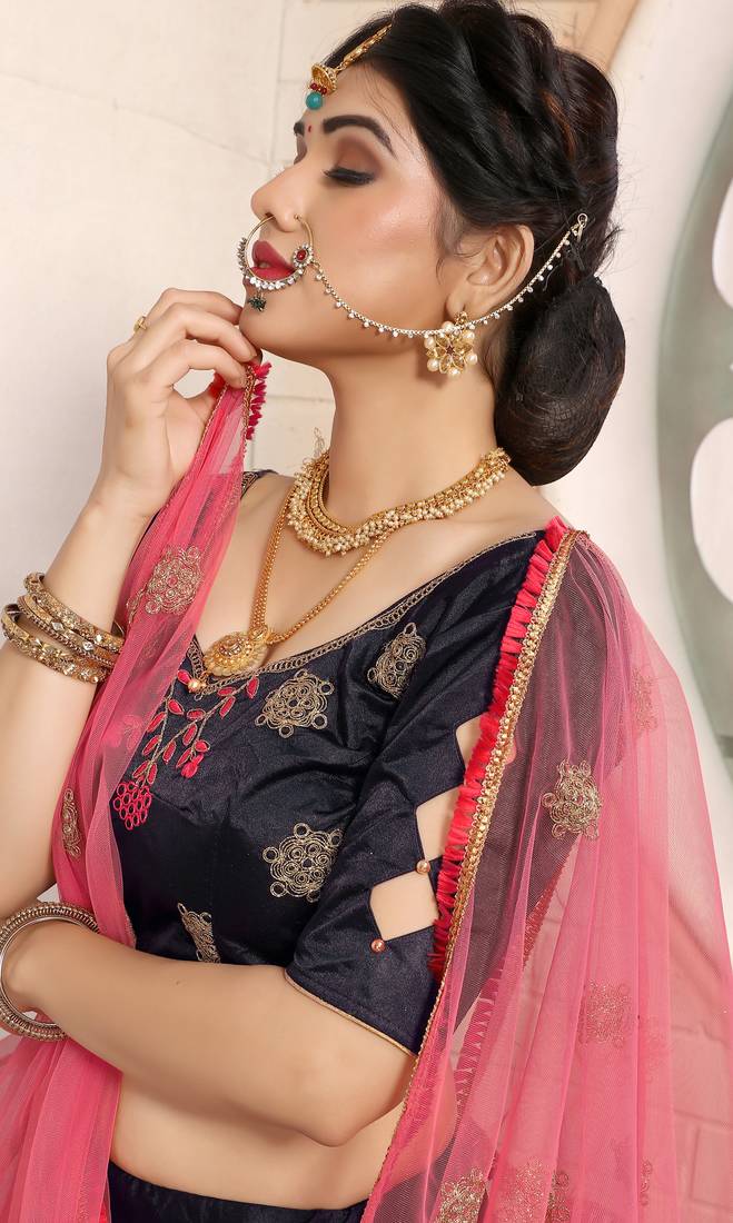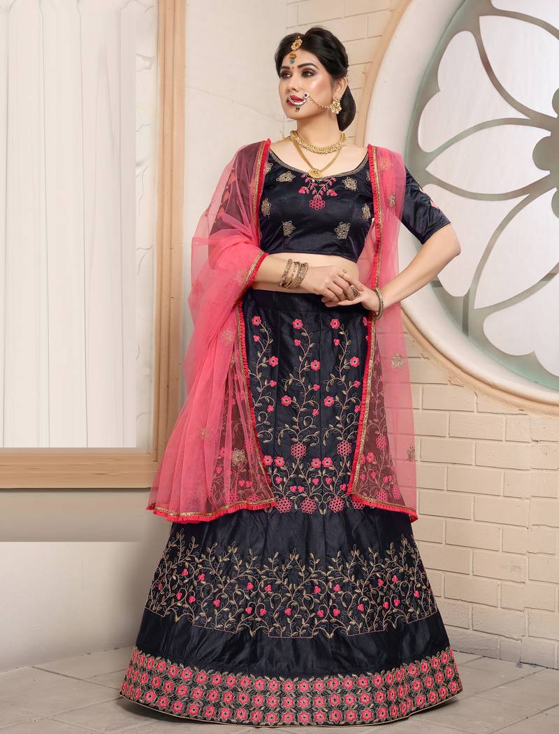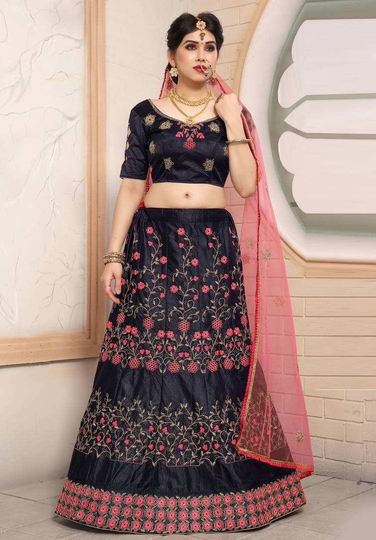 | Product Name | Striking Navy Blue Embroidered Satin Semi Stitched Lehenga | |