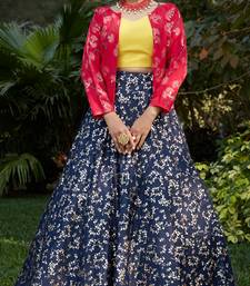 Product Name | Navy Blue Metallic Foil Printed Net Semi Stitched Bridal Lehenga | |