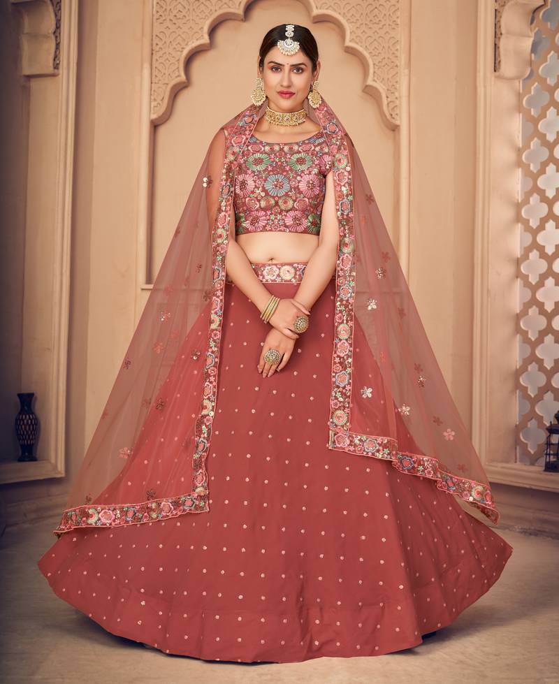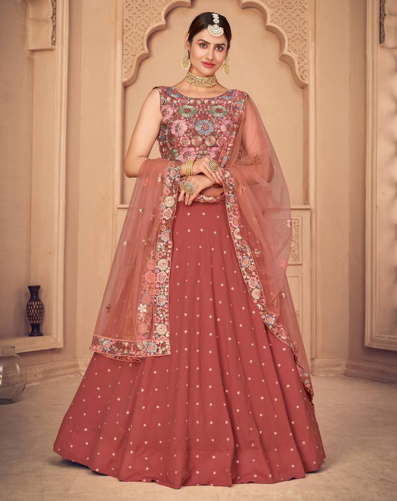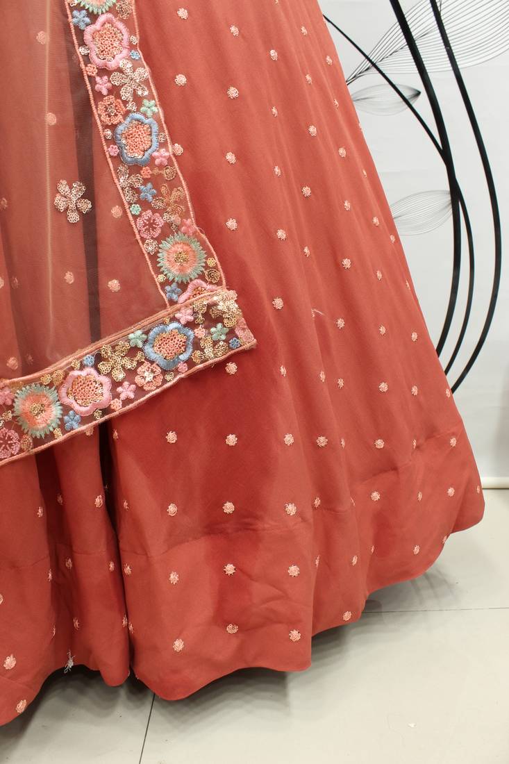Product Name | Gorgeous Orange Thread And Sequins Embroidered Georgette Semi Stitched Party Wear Lehenga | |