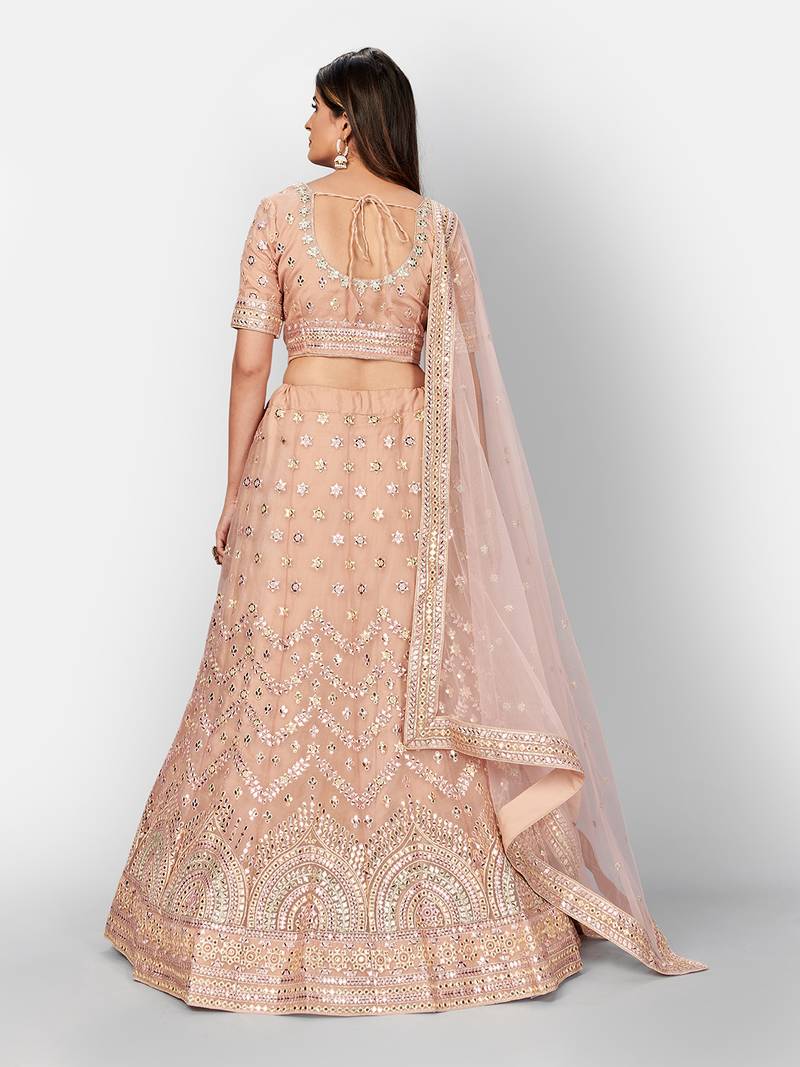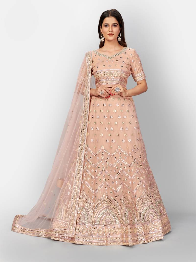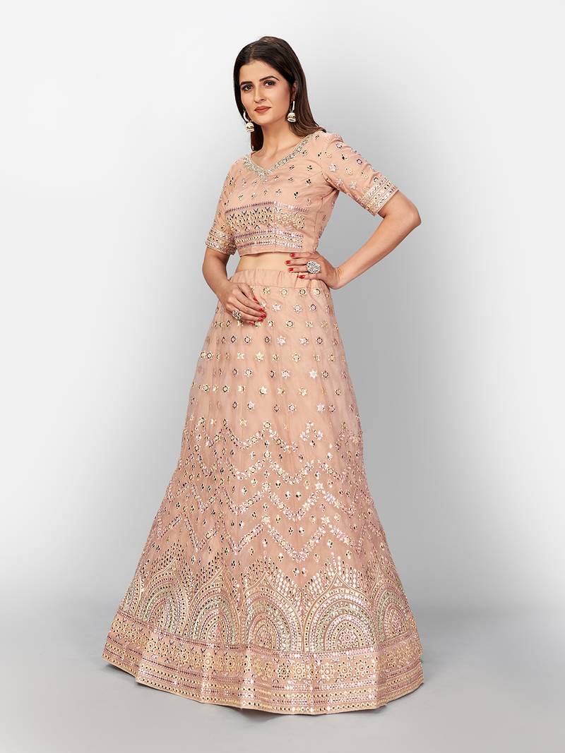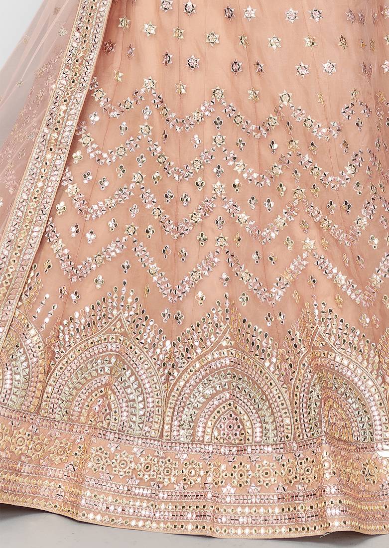 Product Name | Hypnotizing Peach Thread Embroidered With Foil Mirror Soft Tissue Organza Semi Stitched Lehenga | |