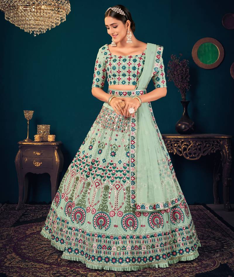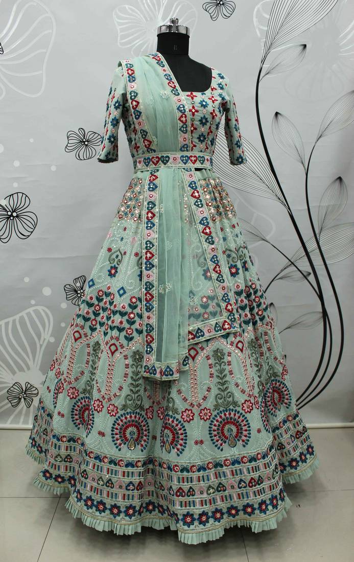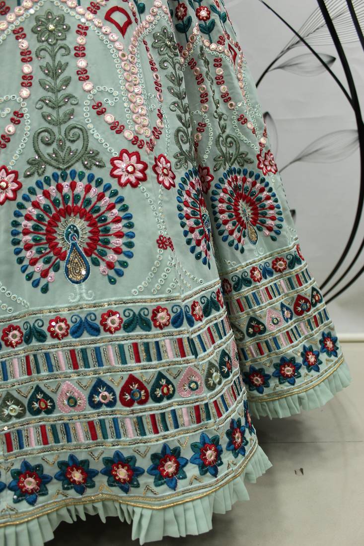Product Name | Pista Green Multi Thread And Sequince With Gota Patti Embroidered Georgette Semi Stitched Lehenga | |