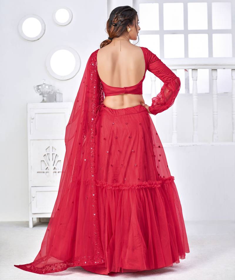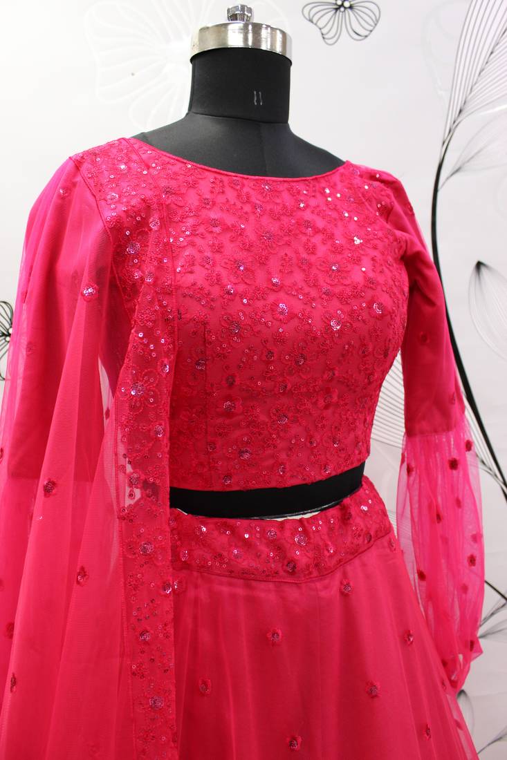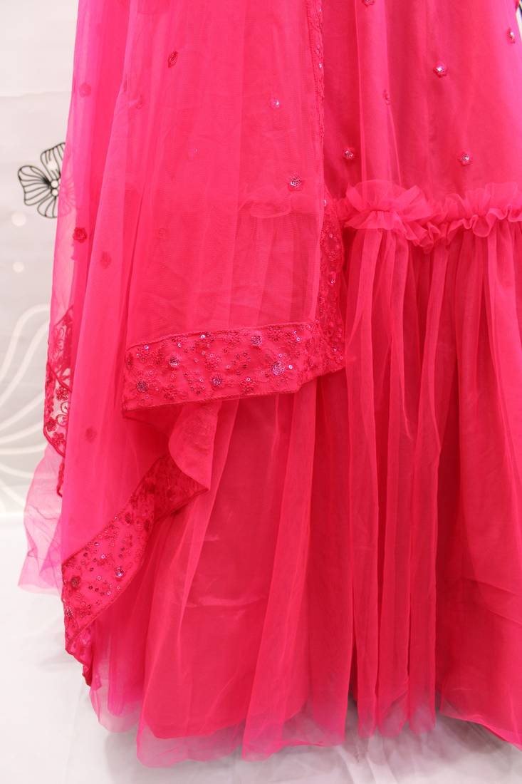| Product Name | Rani Pink Thread With Sequins Embroidered Net Semi Stitched Party Lehenga | |