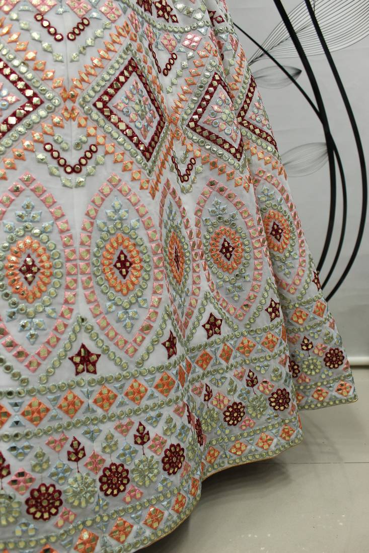 Product Name | White Multi Thread With Gota Patti Embroidered Georgette Semi Stitched Lehenga | |