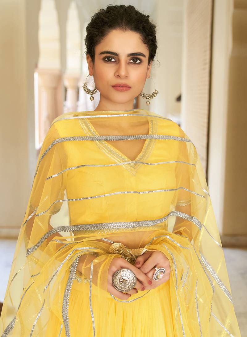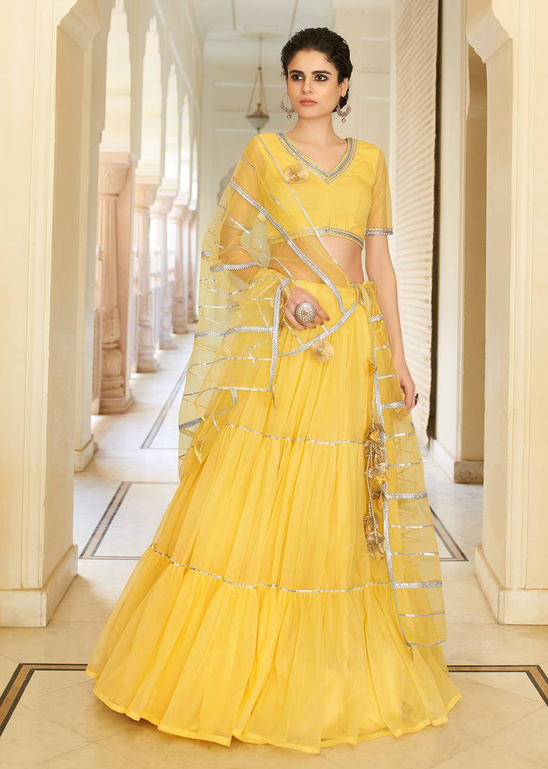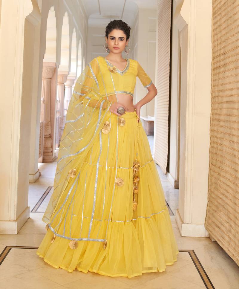 Product Name | Bewitching Yellow Gotta Patti Net Semi Stitched Lehenga | |
