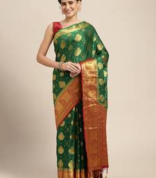 Green woven crepe saree with blouse