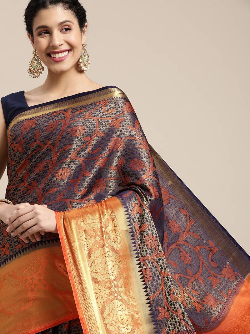 | Product Name | Navy Blue Woven Art Silk Saree With Blouse | |