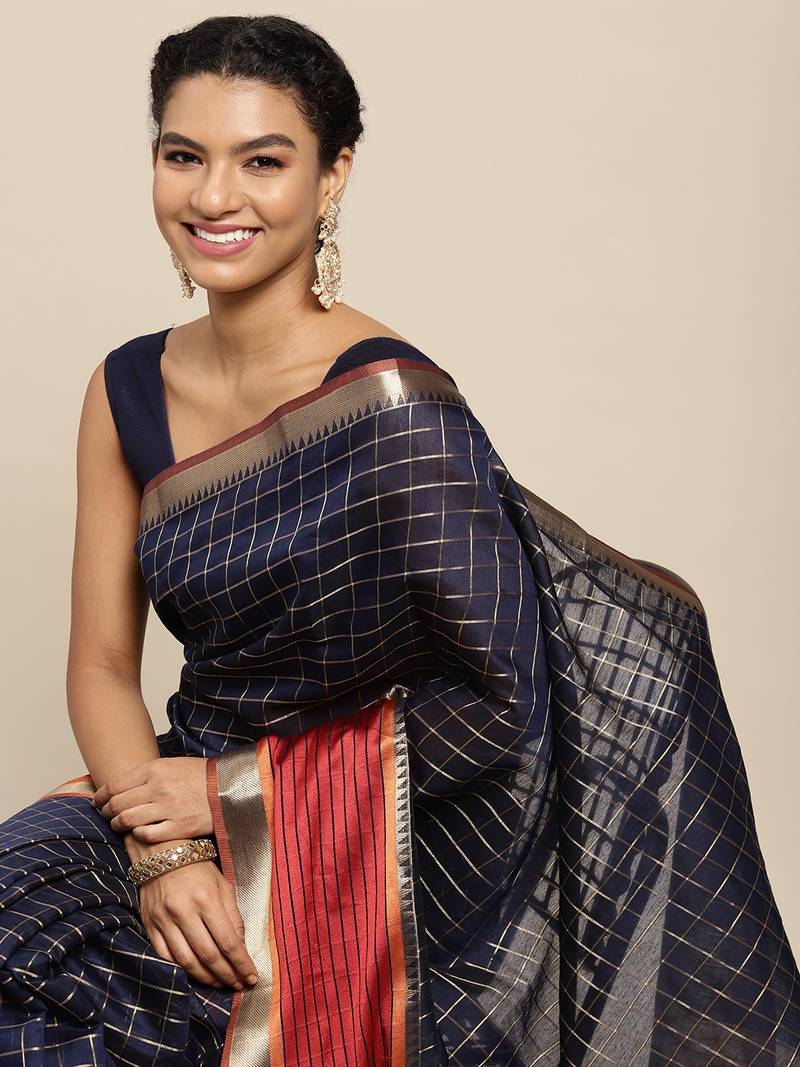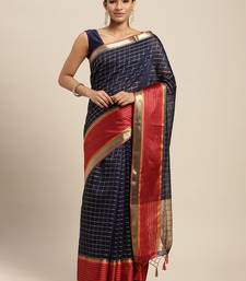 Navy blue woven art silk saree with blouse