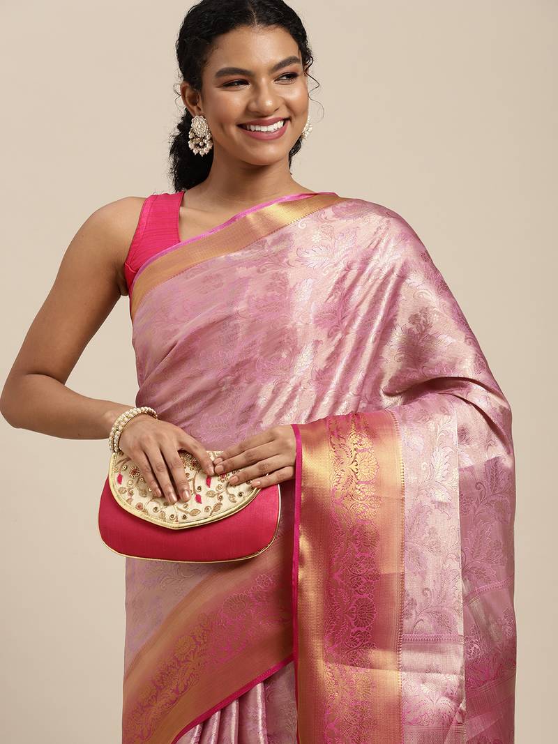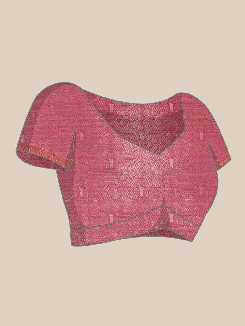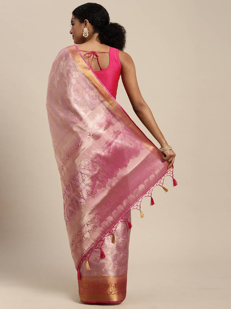 Pink woven art silk saree with blouse