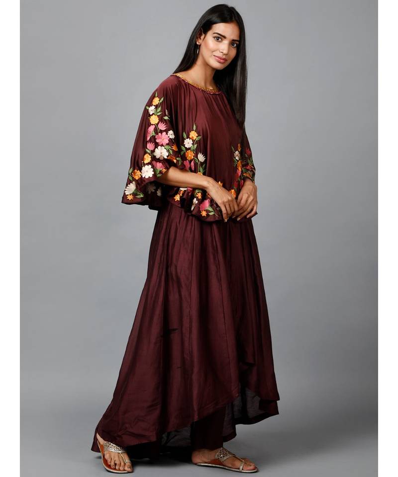 Product Name | Maroon Floral Cape Suit | |