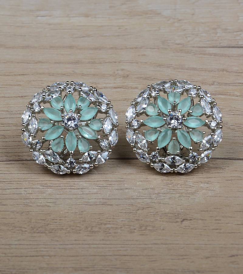Rhodium plated mint embellished american diamond earrings 216ed625