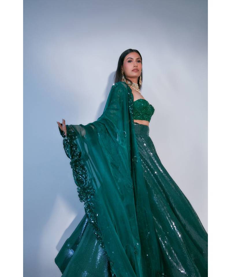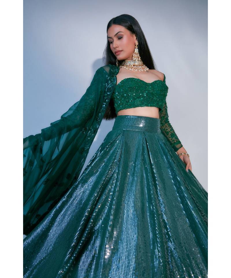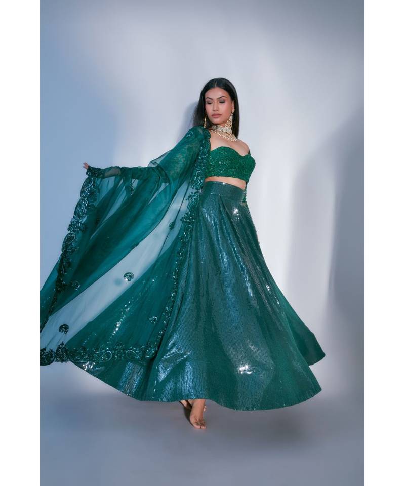 | Product Name | Hand Embroidered Choli With Keri Dupatta With Sequin Skirt | |