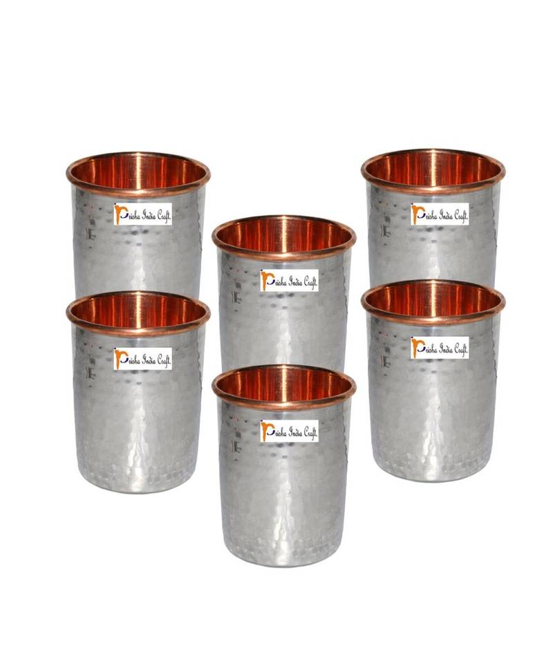 Product Name | Prisha India Craft Hammered Design Copper Steel Glass Tumbler Drinkware & Serveware Set Capacity 250 Ml Set Of 6 | |