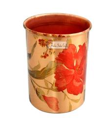 Prisha india craft pure copper digital printed flower design glass tumbler 300 ml