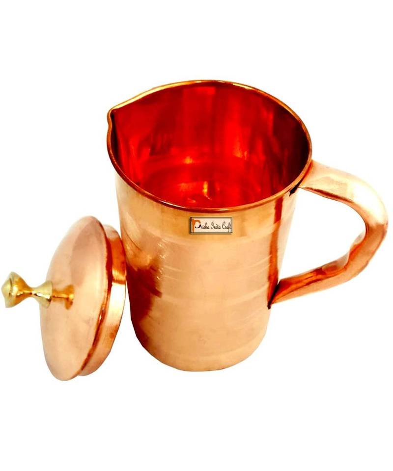 Product Description | Features: Pure Copper Jug With Lid And 1 Tumbler, Material: Copper, Color: Copper, Jug Dimension: Weight(Grams): 550, Volume (Ml): 2000, Height(Inch): 8.00", Width/Diameter(Inch): 4.50" | Glass Dimension: Height: 4.50 Inch, Width/Diameter: 3.00 Inch, Weight: 140 Gram, Capacity 350 Ml | Note* On Purchase You Will Get: 1 Pure Copper Jug , 1 Copper Tumbler , 1 Copper Cleaning Powder Best Quality Elegent Gift |