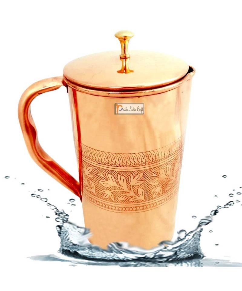 Product Description | Features: Pure Copper Jug Diameter 4.5 Inches, Height 8 Inches, Capacity 1600 Ml, Weight 310 Grams |