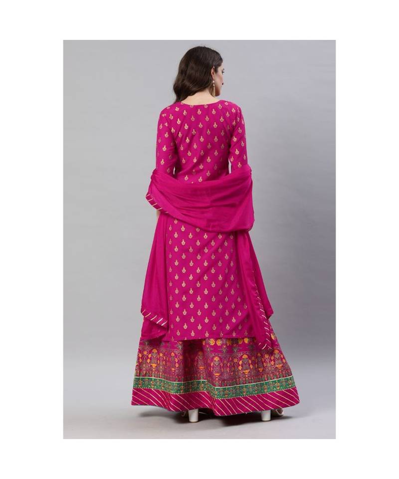 Product Name | She Will Pink Foil Printed Gotta Patti A Line Vicsose Rayon Kurta With Skirt & Dupatta | |