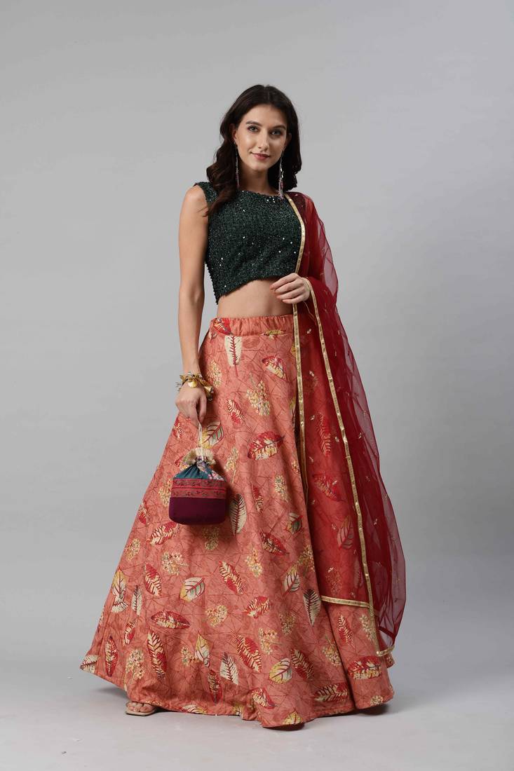 Product Name | Shubhkala Peach Cotton Printed Choli Blouse With Lehenga Ghagra With Dupatta | |