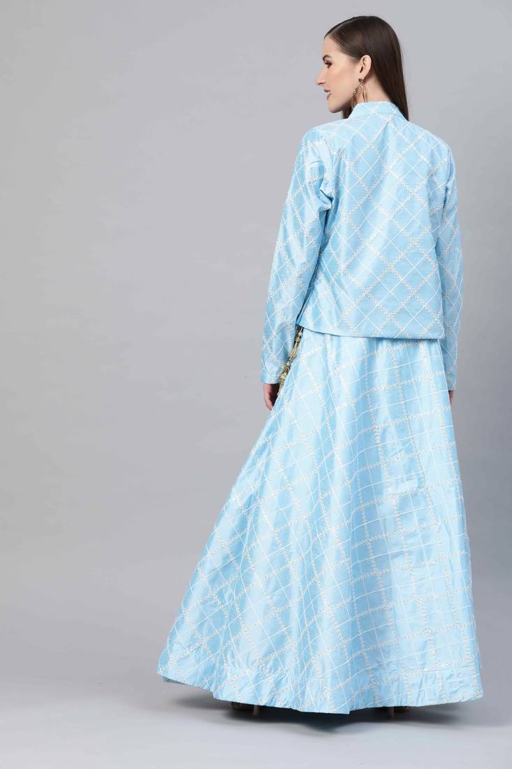 Product Name | Shubhkala Sky Blue Thread Embroidered Art Silk Semi Stitched Lehenga With Koti | |