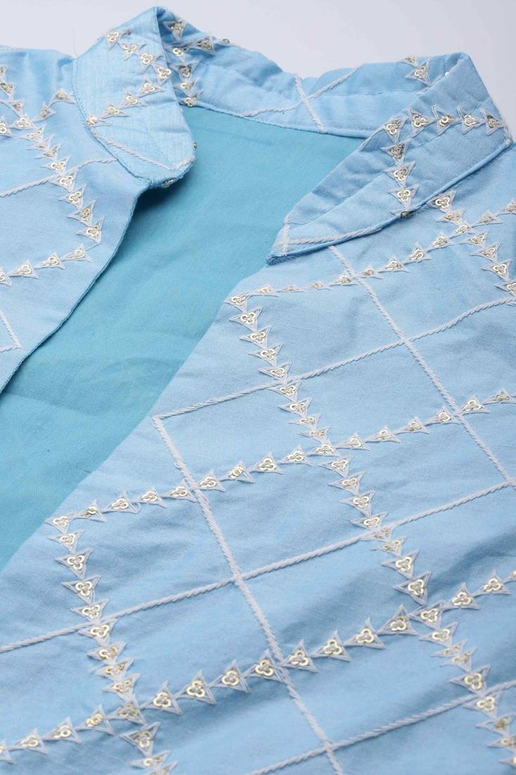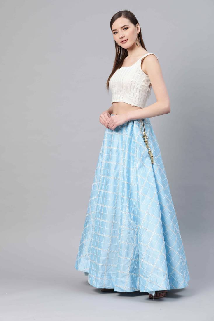 Shubhkala sky-blue thread embroidered art silk semi stitched lehenga with koti