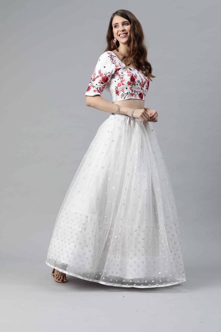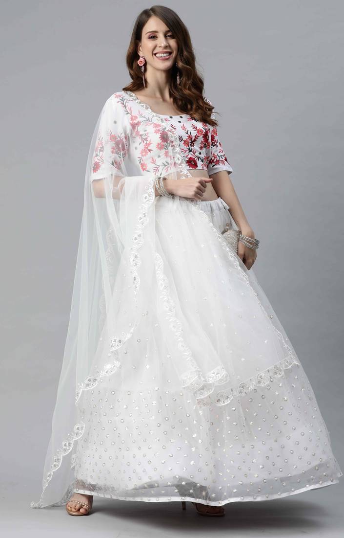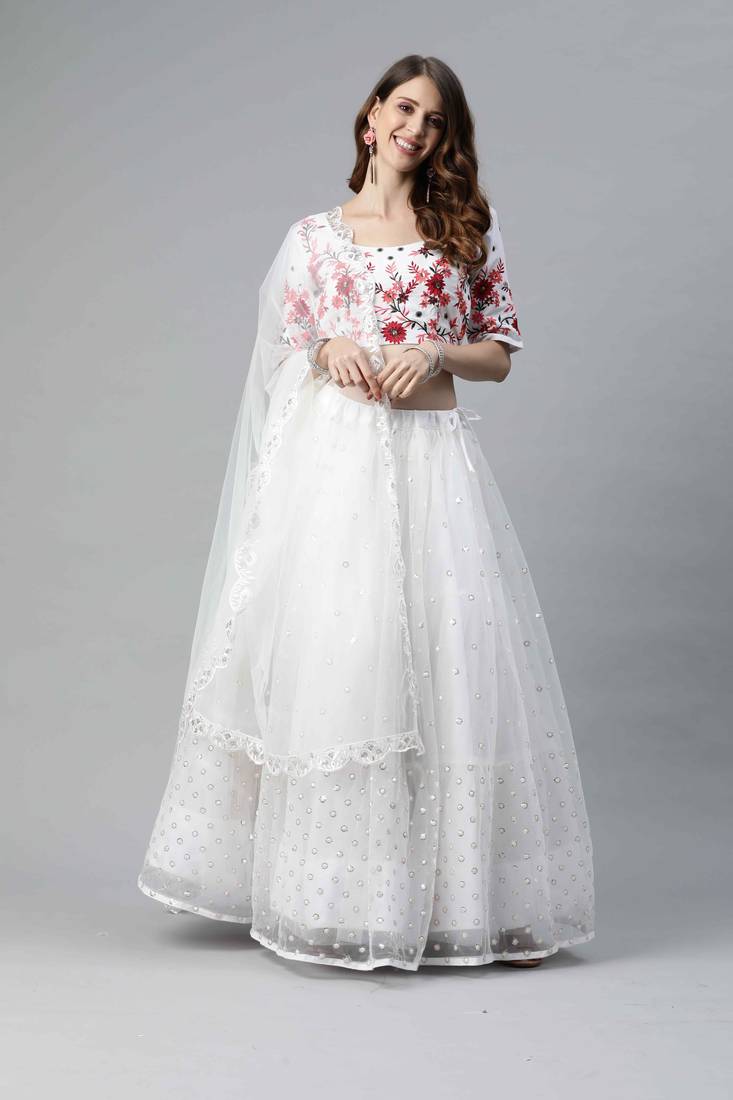 Product Name | 卐 शुbhkala White Net Embroidered Choli Blouse With Lehenga Ghagra With Dupatta | |