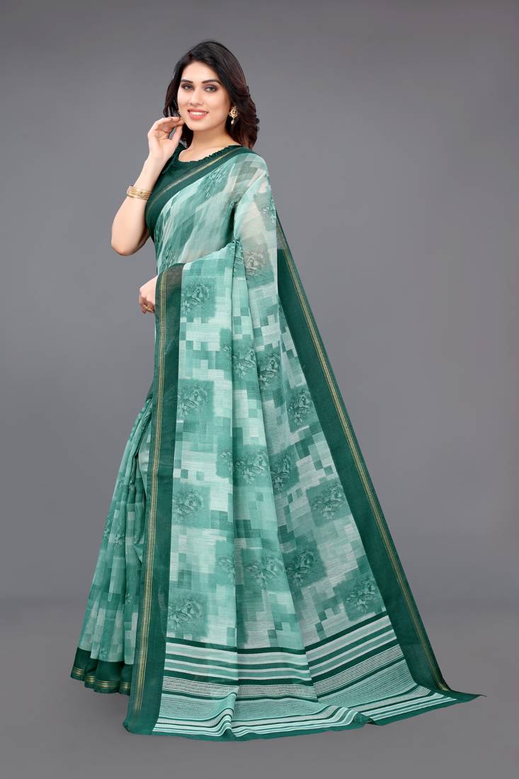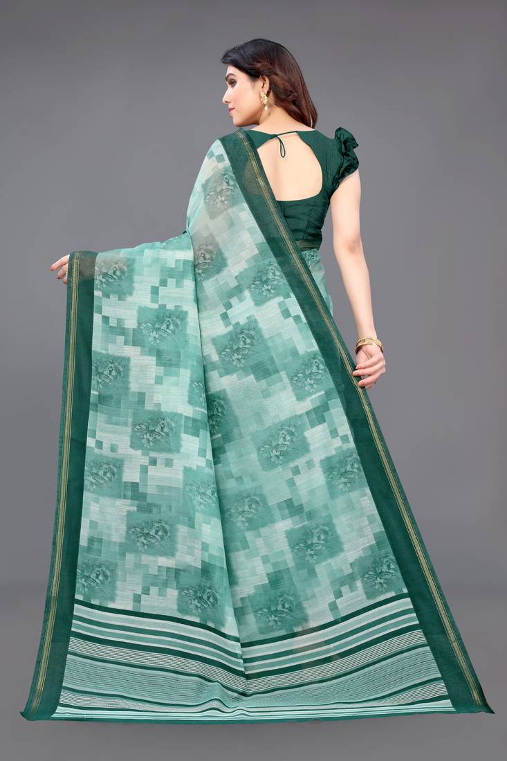 | Product Name | Teal Printed Cotton Saree With Blouse | |